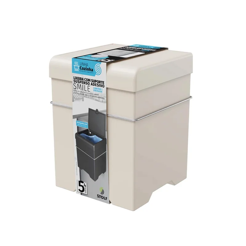 - Lixeira com opção suspensa ou de chão, fixação por adesivo, sistema simples de abertura