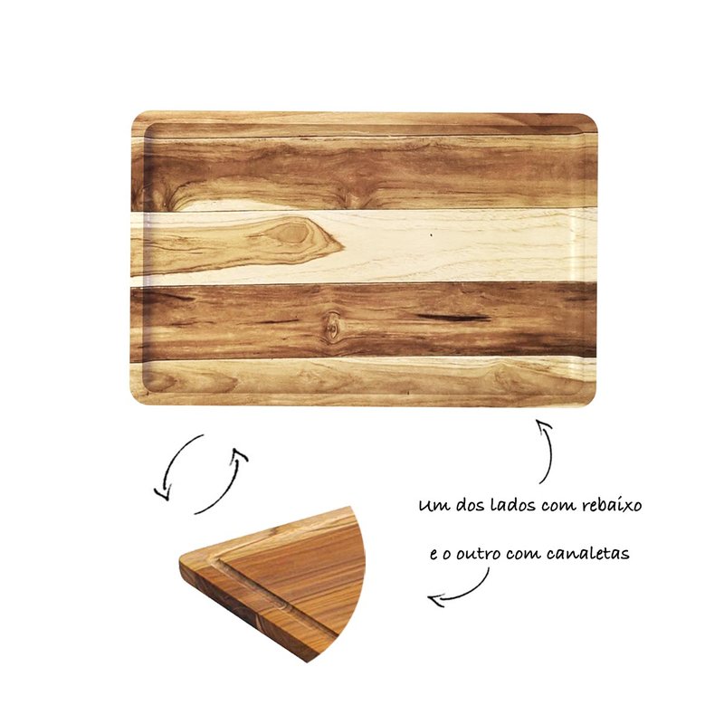 Seu design com dupla função, canaleta e rebaixo, auxilia no preparo e no corte de alimentos, evitando o excesso de líquidos na bancada e proporcionando mais organização durante o uso. Além de funcional, é perfeita para servir e compartilhar momentos especiais com amigos e familiares.