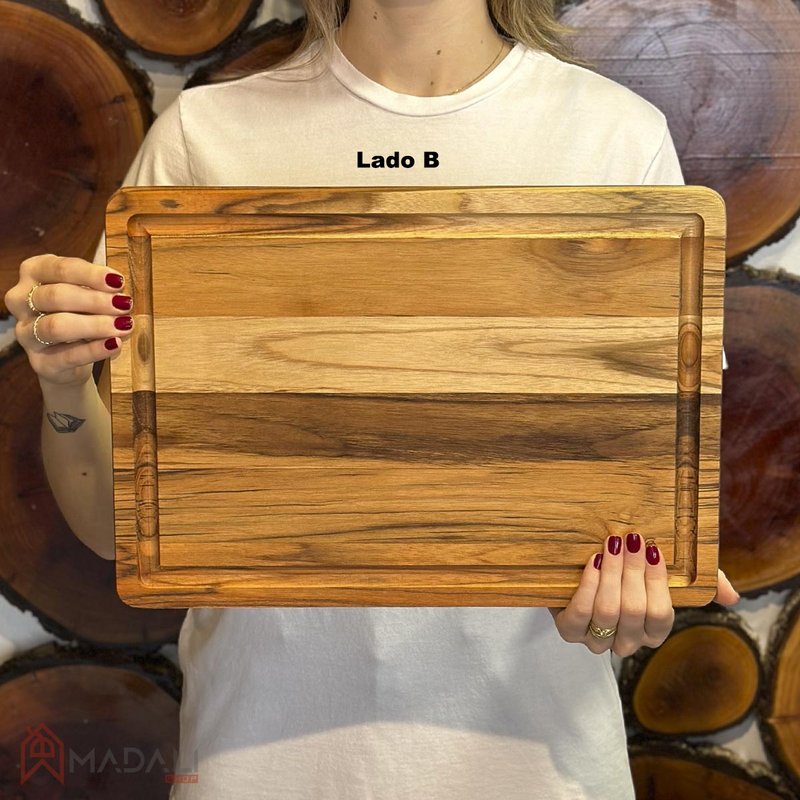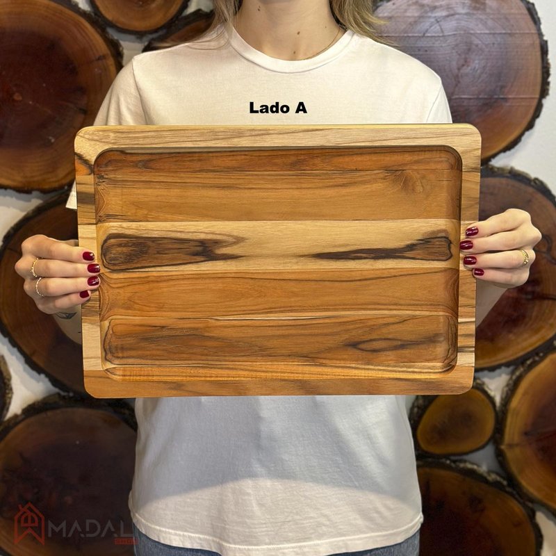 A Tábua de Madeira com Dupla Função Canaleta e Rebaixo - Stolf é ideal para quem busca praticidade e sofisticação na cozinha ou no churrasco. Produzida em madeira teca, conhecida há mais de 500 anos por sua resistência à água e às ações do tempo, oferece alta durabilidade, rigidez e um acabamento natural que valoriza qualquer ambiente.